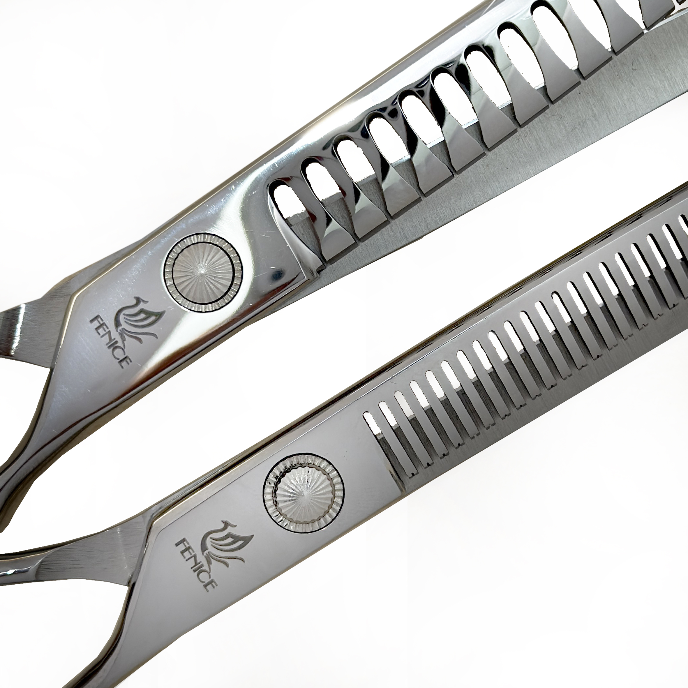 ست قیچی حیوانات فنیس سایز 7 اینچ ، مجموعه کامل و حرفه ای برای اصلاح و آرایش انواع حیوانات خانگی است . این ست با تیفه های استیل 440c ژاپن ضدزنگ با کیفیت بالا طراحی شده که دوام ، تیزی و دقت برش را تضمین میکند .