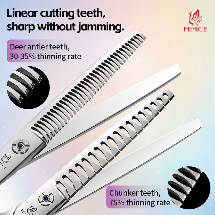 ست قیچی حیوانات فنیس سایز 7 اینچ ، مجموعه کامل و حرفه ای برای اصلاح و آرایش انواع حیوانات خانگی است . این ست با تیفه های استیل 440c ژاپن ضدزنگ با کیفیت بالا طراحی شده که دوام ، تیزی و دقت برش را تضمین میکند .