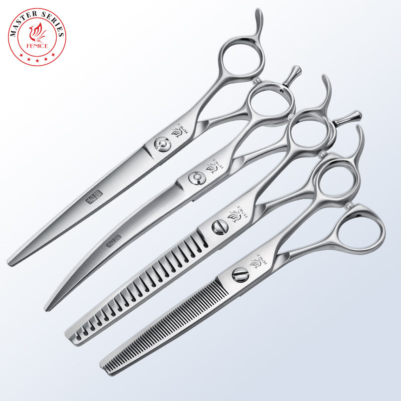 ست قیچی حیوانات فنیس سایز 7 اینچ ، مجموعه کامل و حرفه ای برای اصلاح و آرایش انواع حیوانات خانگی است . این ست با تیفه های استیل 440c ژاپن ضدزنگ با کیفیت بالا طراحی شده که دوام ، تیزی و دقت برش را تضمین میکند .