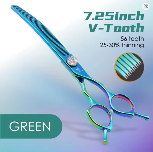 قیچی پیتاژ دندانه ریز کرو فنیس سایز 7.25 (20%-25% curved) , (30% thining ) با طراحی ارگونومیک و ساختار دندانه ریز ، گزینه ای ایده آل برای حجم گیری و تراکم موهای حیوانات است .