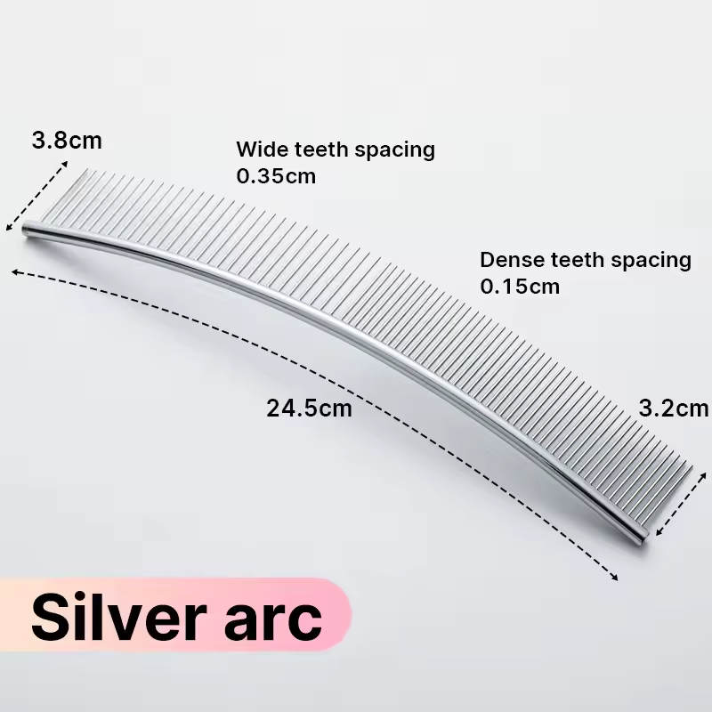 شانه فلزی منحنی با دسته آلومینیومی سبک، مخصوص باز کردن گرهها، مرتبسازی و فینیشینگ مو در سگها و گربهها