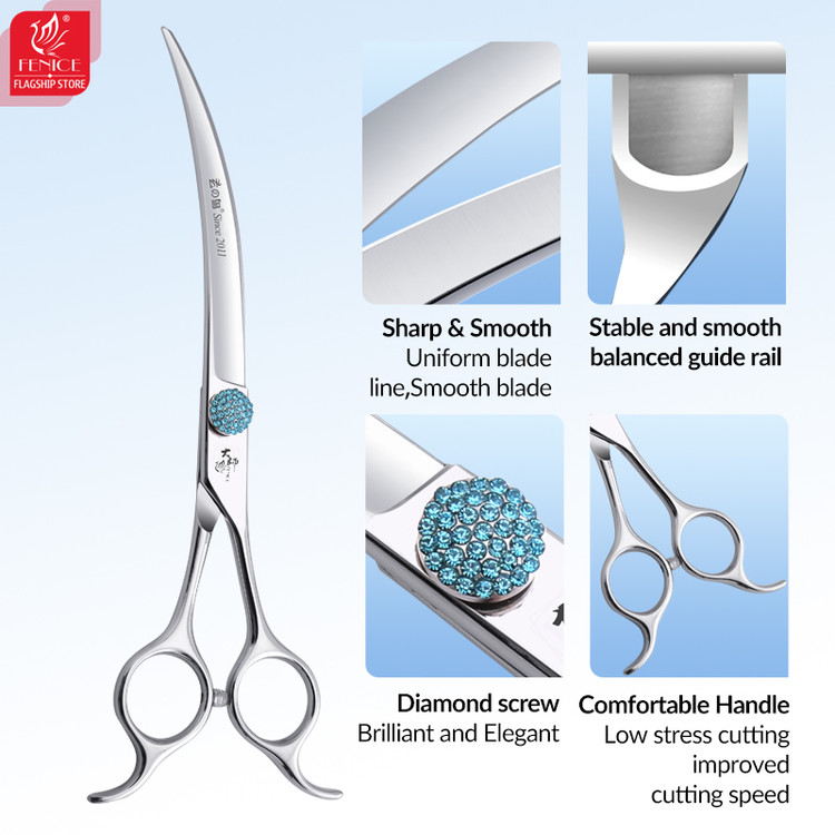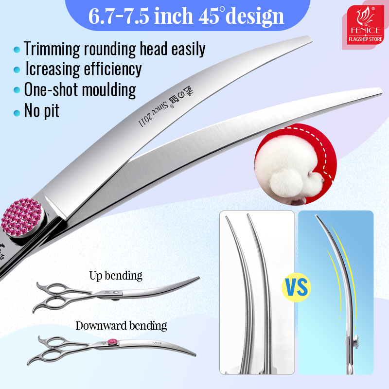 این قیچی کات سوپر کرو با سایز 7.5 اینچ (45° curved) ، ابزاری حرفه ای برای اصلاح دقیق حیوانات خانگی است . بدنه این قیچی از استیل ضدزنگ با کیفیت بالا ساخته شده و با نگین صورتی زیبا روی آن، ترکیبی از عملکرد حرفه ای و طراحی ظریف و لوکس را به نمایش میگذارد .
